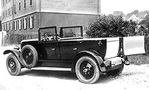 Das robuste Fahrzeug wurde auch als größere Alternative zum 4 PS-Lieferwagen angeboten. Die beiden ersten Abbildungen zeigen die 10/45 PS-Ausführung von 1925. In der Werbung waren damals kolorierte Zeichnungen noch weit verbreitet. Leider liegen keine Fotos vor, die ihn als Lieferwagen zeigen. Dennoch ist dieser als „Mehrzweck-Wagen“ ausgelegte Vertreter höchst interessant. Unter der Woche diente er zum Transport von Nützlichem und Notwendigen; für den Ausflug am Sonntag konnte er mittels einfach einzusetzender Bestuhlung als Tourenwagen genutzt werden. Sogar ein einfaches Spriegelgestell mit Verdeck gab es dazu, dass zumindest leidlichen Wetterschutz gewährte.