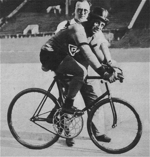 Im ersten Drittel des vergangenen Jahrhunderts waren Steher-Rennen ungeheuer populär. Im Windschatten der vorausfahrenden Schrittmacher, die – daher der Name - auf ihren Motorrädern stehen, erreichen die Radrennfahrer spektakuläre Geschwindigkeiten bei ihren halsbrecherischen Bahnrennen. In den Jahren 1924 und 1925 ringen der Belgier Léon Vanderstuyft und der Franzose Jean Brunier erbittert um den Stunden-Weltrekord für Steher: