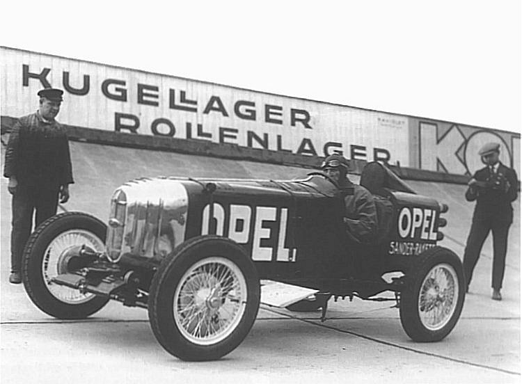 Der zigarrenförmige Raketenrenner RAK2 basierte fahrwerksmäßig auf dem Typ 10/40 PS - hier noch auf dem Werkshof in Rüsselsheim.