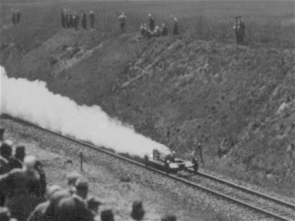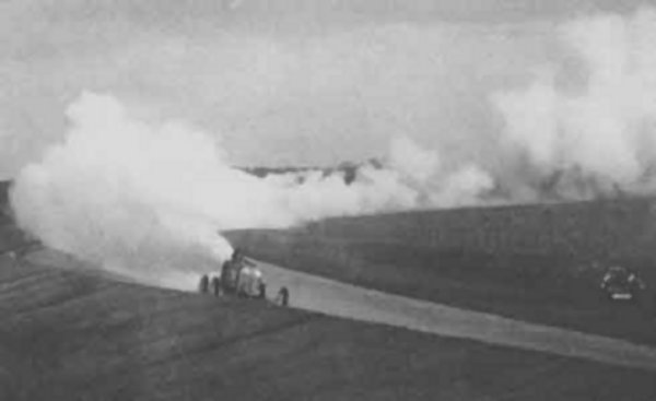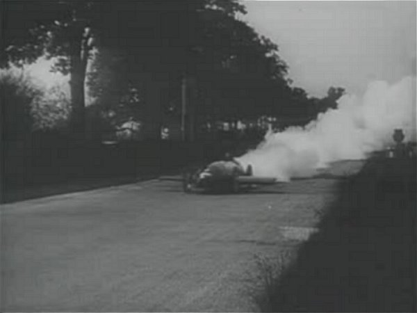 Auf dem letzten Drittel der gut 1800 Meter langen Fahrt kommt es beinahe zur Katastrophe. Mehrmals hebt der Vorderwagen ab - die Vorderachse hängt in der Luft! Jetzt eine Unebenheit in der Fahrbahn, die die Hinterräder aus der Richtung bringt... Nur mit viel Geschick und wohl noch mehr Glück bringt der Pilot das Fahrzeug wieder unter Kontrolle.