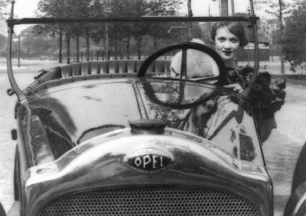 Nicht bekannt ist der Anlass, bei dem Filmdiva Marlene Dietrich im Opel abgelichtet wurde.