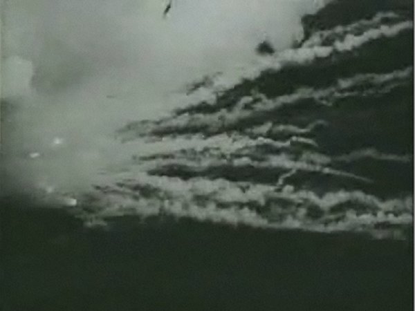 RAK4 setzt sich üngewöhnlich schwerfällig in Bewegung. Schon knallt eine erste Explosion und ein gleißend brennender Brocken fliegt seitlich weg.