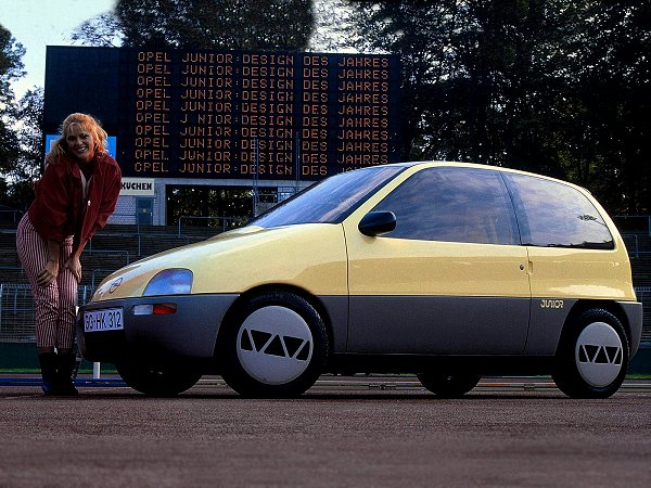 ² Der Name „Junior“ tauchte erstmals 1938 als Bezeichnung für die Sparausführung des Kadett auf (KJ38). Nachfolgend erhielten verschiedene Sondermodelle, die sich mit vereinfachter Ausstattung besonders an junge Leute wandten (z.B. Ascona Junior), diese Bezeichnung. 1983 entstand die nächste, ebenfalls „Junior“ genannte Kleinwagen-Studie, bei der vor allem Ideen und Wünsche der jungen Opel-MitarbeiterInnen umgesetzt wurden.