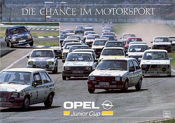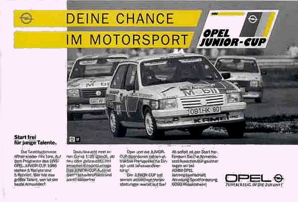 Ab 1986 wurde der Junior Cup ausschließlich auf dem Corsa 1.3S gefahren. In die Kategorie Stufe C (schadstoffarme Fahrzeuge) eingestuft, war der Corsa steuerfrei. Der Opel-Junior-Cup wurde leider nach der Serie 1989 eingestellt.