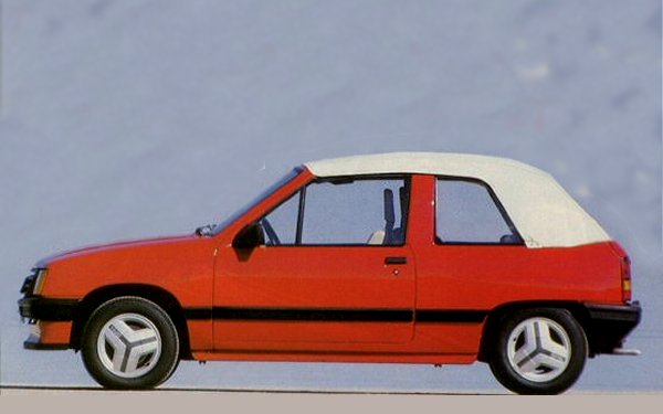 Vor Beginn der 10 Rallyes umfassenden Serie veranstaltete Opel einen für alle Interessenten kostenlosen Grundlehrgang. Geleitet wurde dieser vom international erfahrenen Willi-Peter Pitz (u.a. Deutscher Rallyemeister des Jahres 1973), der auch als Cup-Organisator fungierte. Frühes „Henkelkörbchen“ - im Sommer 1984 stellte GM Spain eigene Cabriolet-Studie vor. Bei der Konstruktion war vorgegeben, die Originalform des Wagens möglichst beizubehalten, was natürlich den Spielraum der Designer und Techniker einengte. Das klappbare Stoffverdeck mit integrierter Plastikheckscheibe wurde hinter den Fondsitzen quasi aufgesetzt. Die hinteren Seitenscheiben wurden durch Einsteckscheiben aus Plexiglas ersetzt. Bedingt durch das Verdeck gab es nur noch eine recht kleine, nach oben aufschlagende Heckklappe, die das Ein- und Ausladen ziemlich erschwert haben dürfte.