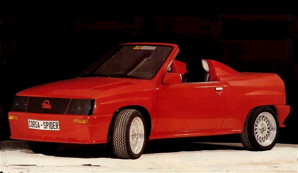 Selbstverständlich konnte der Spider zusätzlich mit allen Extras und Anbauteilen zu- und umgerüstet werden, die Irmscher ohnehin mittlerweile für den Corsa anbot: Tieferlegung, Front- und Heckschürzen, Seitenschweller, Doppelscheinwerfergrill, Lederausstattung (sehr selten gewählt!) etc. etc. Entsprechend der gewählten Basisausführung wurden die zum Umbau bestimmten Schrägheck-Corsa direkt aus Spanien kommend an Irmscher ausgeliefert. Allerdings hatten sie keine Heckklappe, da die ohnehin durch ein GFK-Bauteil ersetzt wurde, und man ließ auch gleich die Innenverkleidungen im Kofferraum weg.