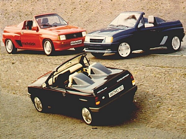 Das dritte Ausrufezeichen in Sachen Corsa setzte der Wiesbadener Tüftler Bernd Michalak, der in Frankfurt seinen Prototyp für einen Corsa Spider zeigte. Nun ist es von Wiesbaden nach Rüsselsheim nicht allzu weit, und so zeigt der Michalak eine frappierende Ähnlichkeit mit dem Opel-Prototyp aus 1982.