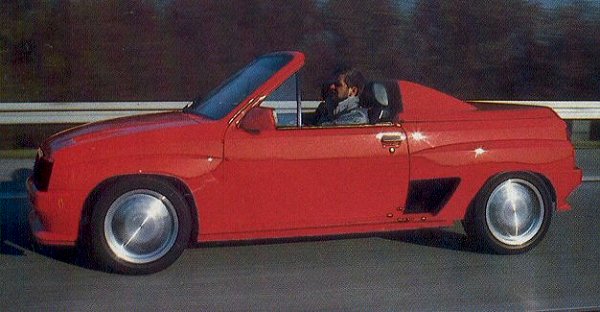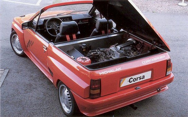 Einen besonderen Knüller hatte dann noch Karosseriebauer und Tuningspezialist Hintermeier aus Kolbermoor in petto: das erste richtige 4-Sitzer-Cabrio auf Corsa-Basis! (Es folgte noch eines von der Firma HiPo.) Der Hintermeier-Umbau beeindruckte besonders mit seinem vom Kadett GSi übernommenen Motor und - erstmalig auf einem Corsa - mit 17''-Felgen! Ein Geschoss, das wegen des hohen Preises allerdings deutlich mehr Interessenten als Käufer fand.