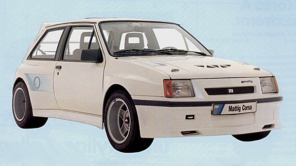 Im Februar hat das Warten endlich ein Ende! Der GSi ist im Handel. Ab auf die Piste - die Autotester sind begeistert! Es muss eigentlich kaum erwähnt werden: schon seit Jahren war der Corsa eines der beliebtesten Tuningobjekte. Der SR und der GT boten sich ja geradezu an. Die Liste der Autoveredeler, die für den Corsa leistungssteigernde Maßnahmen und / oder alternative Anbauteile anboten, ist schier endlos. Nun gab der GSi der Tuningszene natürlich nochmals ganz besonderen Auftrieb. Den Vogel dürfte - einmal mehr - die Firma Mattig mit ihrem Breitbau „Corsa Extrem“ abgeschossen haben. Der Umbausatz umfasste Front- und Heckschürze, vordere Kotflügel und hintere Seitenwände (!). Optional konnte noch ein Doppel-Heckflügel montiert werden. Dazu Tiefbettfelgen auf dem Corsa: Mattigs Breitbau fuhr auf Reifen der Dimensionen 225/55-15 (vorn) und 285/50-15 (hinten)!!!
