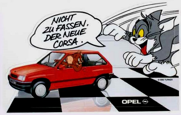 In diesem Zusammenhang schaltete Opel neue Anzeigen und Werbespots mit den Zeichentrickfiguren Tom & Jerry als Protagonisten. Die witzigen Filmchen erreichten schnell Kultstatus.