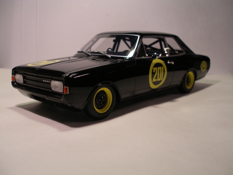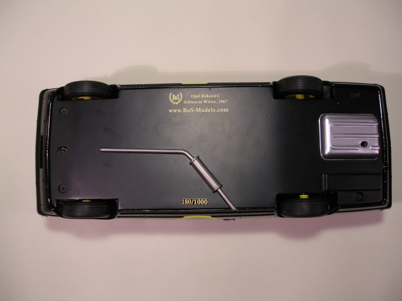 Zu meckern gibts so gut wie nix, unterm Frontblech scheind beim echten Original eine Art Belüftungsspoiler/Blech vor den Vorderreifen zu sitzen, hier fehlte es, die Opelzeichen haben stumpfe Enden und nicht die Spitzen, das fällt kaum auf, am Kofferrumdeckel rechts war meines Wissens ein Schriftzug REKORD 1900 vorhanden, der fehlt, es gibt Bilder mit und ohne GOODYEAR Schriftzügen auf den Reifen (kein zwingendes muss) und das Opel GT Lenlkrad ist etws zu flach geworden.