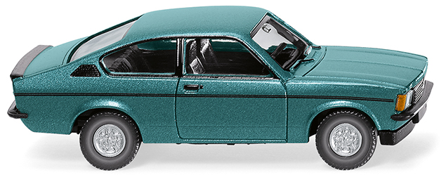 Karosserie kristalltürkis-metallic lackiert und. Inneneinrichtung mit Lenkrad schwarz. Fahrgestell und Kühlergrill schwarz. Opel-Zeichen gesilbert. Scheinwerfer vorn transparent eingesetzt. Felgen silber. Seitliche Fensterumrandungen sowie Zierlinie, Türgriff mit Schloss und Lüftung schwarz bedruckt. Heckseitiger Schriftzug ,,Rallye 2.0E" sowie Opel-Logo schwarz bedruckt. Rückleuchten rot, Blinker orange, Rückfahrscheinwerfer gesilbert.