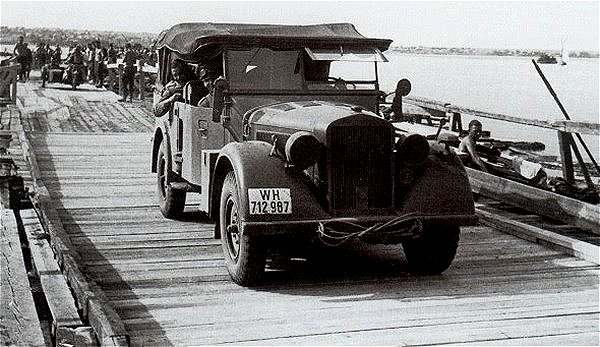 Im Gegensatz zum mittleren entpuppte sich der „Leichte geländegängige Einheits-Personenkraftwagen“ Kfz. 1, den Stöwer, BMW und Hanomag (in der Reihenfolge der gelieferten Stückzahlen) bauten, unter den Bedingungen des Kriegseinsatzes als empfindsames Weichei, das serienweise ausfiel. Um den nun sprunghaft gestiegenen Bedarf der Wehrmacht an kleinen, wendigen Führungs- fahrzeugen zu decken, wurden zahlreiche der abertausenden bei Kriegsbeginn „eingezogenen“ zivilen Pkws mehr oder weniger weitreichenden Umbauten unterzogen, die sie unter Verwendung von Bauteilen aus dem Einheits-Pkw-Programm zu provisorischen Kübelwagen machten. Dabei hatten die beteiligten Karosseriebaufirmen relativ freie Hand, so dass es trotz der vom Heereswaffenamt in Berlin hastig angefertigten Musterzeichnungen die vielfältigsten Spielarten dieser Fahrzeuge gab. Übrigens erwiesen sich diese Fahrzeuge oftmals als brauchbarer und langlebiger als manche militärische Spezialkonstruktion. Das Bild zeigt einen Opel Super 6, der es in Diensten einer Panzerdivision immerhin bis auf die Krim und in den Kriegssherbst 1943 hinein geschafft hat. Das Fahrzeug ist nicht nach- weislich ein Gläser-Umbau, aber sehr typisch für seine Art.