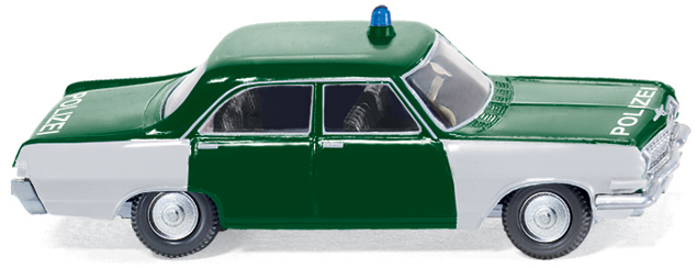 Wiking hat geschrieben:Karosserie in tannengrün und hochglanzveredelt. Inneneinrichtung in anthrazitgrau. Fahrgestell und Kühlergrill in aluminium. Felgen und seitlicher Zierrat an Fensterbegrenzungen und Türen gesilbert. Kotflügel vorn und hinten in weiß. Auf Motorhaube sowie Kofferraumhaube Schriftzug „Polizei“ in weiß. Warnlicht blautransparent eingesetzt. Frontseitiges Opel-Logo in silber, heckseitiger Schriftzug „Kapitän“ und Kofferraumschloss in silber.