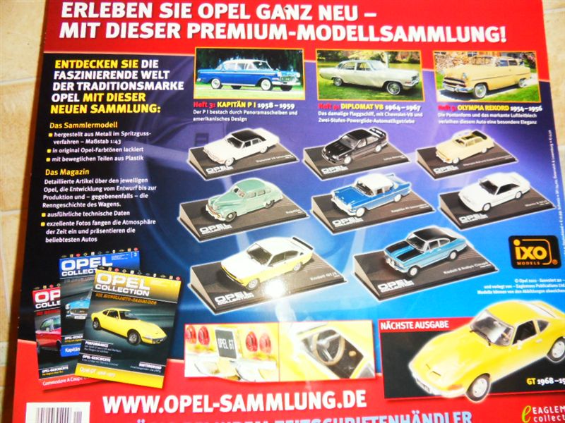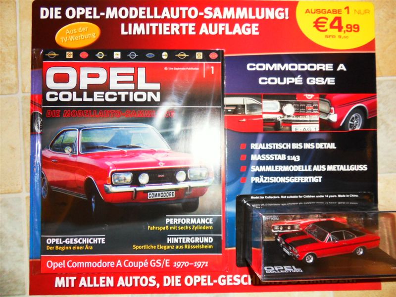 Hier die Bilder der Erstausgabe der Opel Collection aus dem Verlagshaus Eaglemoss (Ausgabe Nr. 1 ab Mittwoch 12.01.2010 überall da, wo es Zeitschrifen gibt)