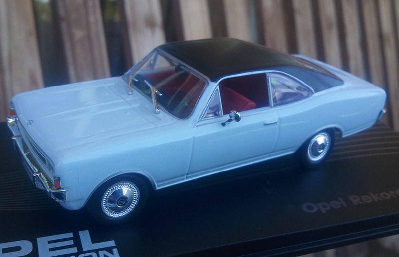 der Rekord C Coupe mit Hardtop ist erschienen. Tolles Modell, die Qualität stimmt, der Maßstab stimmt ebenso sehr genau und das Modell hat auch 2 Aussenspiegel, was ja in dieser Zeit nicht ganz üblich war. Die Farbe passt auch, irgend ein "schmutziges weiß" und kein "hellblau", das Hardtop "schwarz matt". Der Innenraum ist wieder detailreich gestaltet. Einziges Manko an meinem Modell, die obligatorischen Fingerabdrücke an den Innenseiten der Fensterscheiben. Obwohl dieses Modell ja dem Commodore A Coupe (erstes Modell dieser Reihe) - bis auf ein paar Kleinigkeiten gleicht. Da waren wohl wirklich noch ein paar Rohkarossen vom Commodore im Lager (wie Sandro schon erwähnte) die in umlackierter Form noch die Werkhallen verlassen mussten, vielleicht kommen dann noch ein paar Commodore Coupes und Rekord Coupes in gelb, blau, lila, grün.......