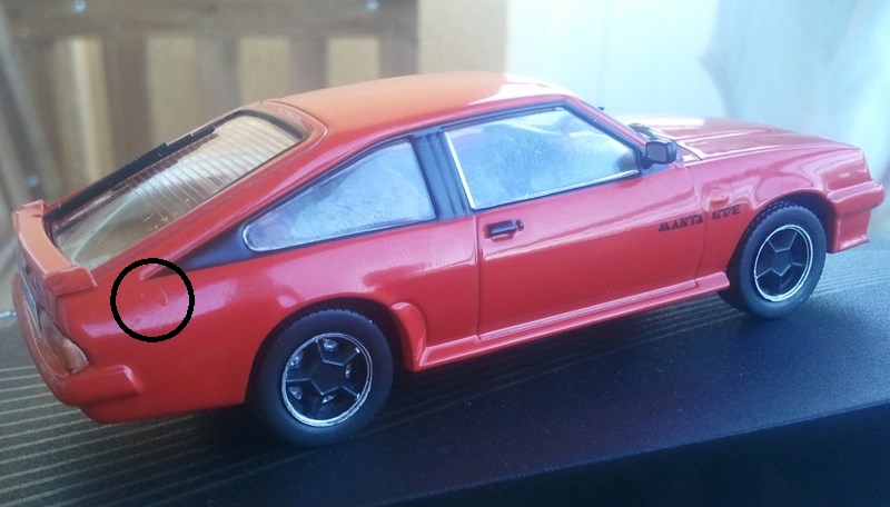 Ist das im eingekreisten Bereich ein Lackfehler oder soll da der Tankdeckel angedeutet werden? Dann wäre er ja wenigstens vorhanden, wenn auch an falscher Stelle. ;)