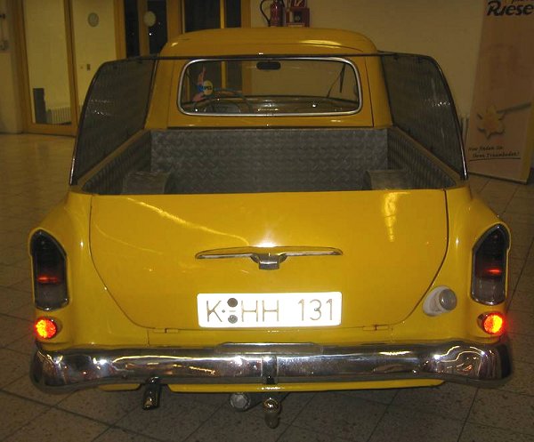 Hier möchte ich dagegen einmal einen serienmäßigen PickUp vorstellen, der zumindest in Südamerika(?) und Südafrika regulär gebaut und vertrieben worden ist. Es handelt sich um den Olympia Rekord P1 von 1959. (Zum P2 gibt's [ --> hier ] einen extra Beitrag.)