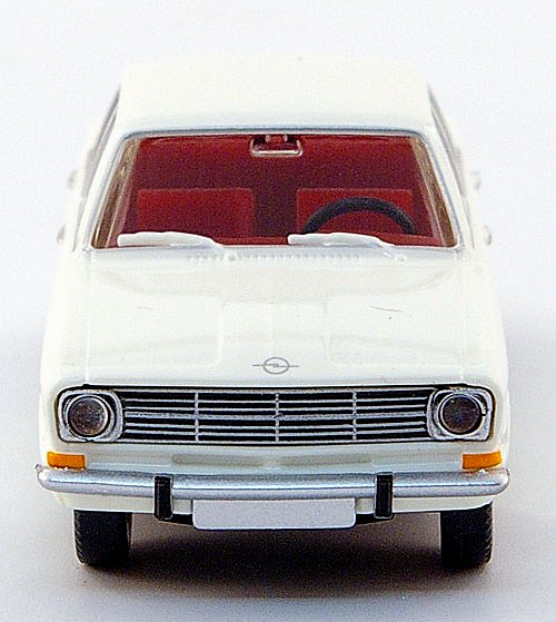 Wikings durchaus wohlgelungene Miniatur des Opel Kadett B als LVL (Ab-Modell). Anhand der Bilder nicht einwandfrei zu erkennen: Als LVL müsste u.U. die seitliche Chromzierleiste an den Radläufen und im Bereich dazwischen noch nachgearbeitet werden. Die Scheibenwischerarme (bis zum Mj. 1971) könnten auch etwas silberne Farbe vertragen. Ansonsten - Lüftungsschlitze vorne, zweizeilige Rückleuchten (hinten!), innen keine Kopfstützen, keine Gurte... - sehr detailgenau umgesetzt.Für Bastler bietet sich, neben der Möglichkeit der Umlackierung in Wunschfarbe, an, die etwas schmucklosere Variante LV nachzugestalten. Vergleichsmöglichkeiten und weitere Anregungen gibt's hier.