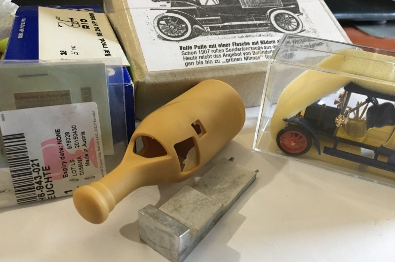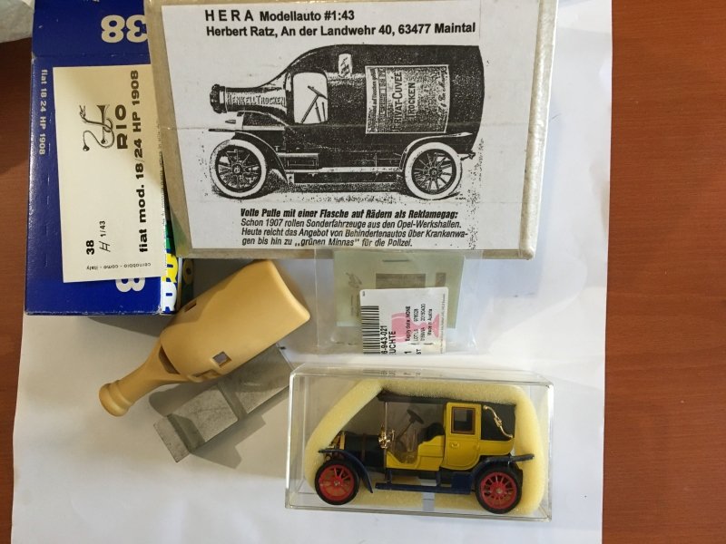Modell / Kurzbeschreibung: Opel 9/10 PS - Opel Werbewagen Henkell - BJ 1907 - 1:43 - H. Ratz HR001 - Resin + Metall roh - kit + Rio Base