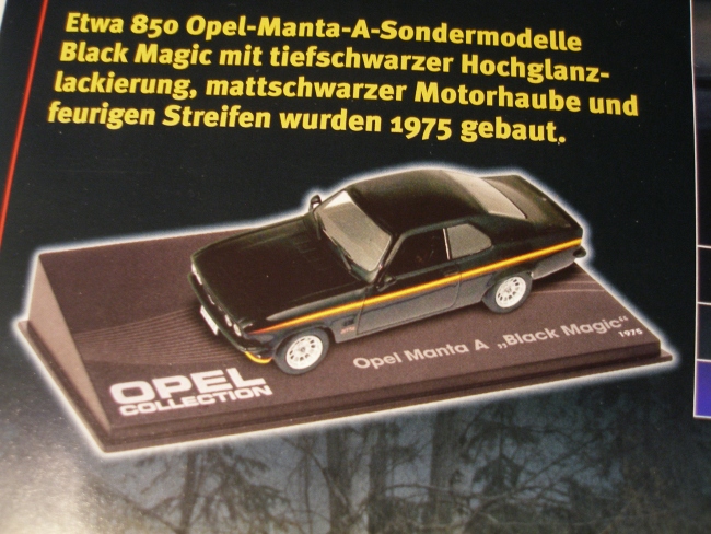 Alternativ wären hier die Manta A-Versionen von Schuco und Minichamps zu nennen, den Black Magic hatte Schuco auch im Programm.