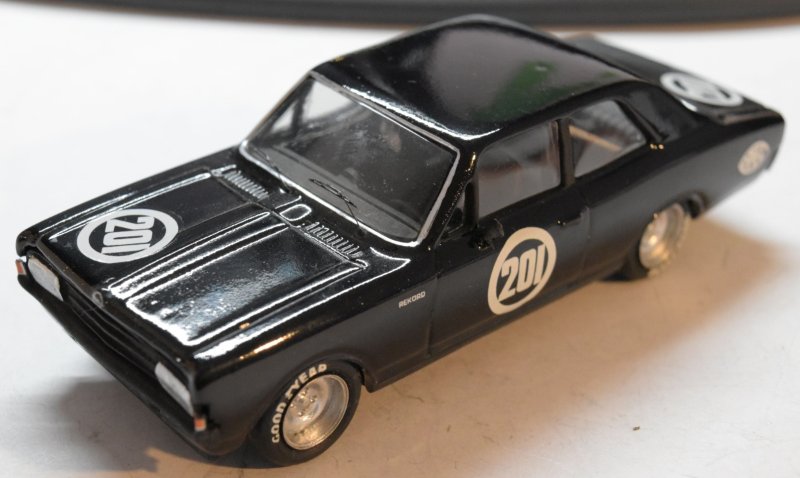 Modell / Kurzbeschreibung: Opel Rekord C 1968 - Schwarze Witwe - 1:43 Autodrome ADS 04 - Weißmetall-Kit schön gebaut - Zolder 1968 #201 - Steinmetz
