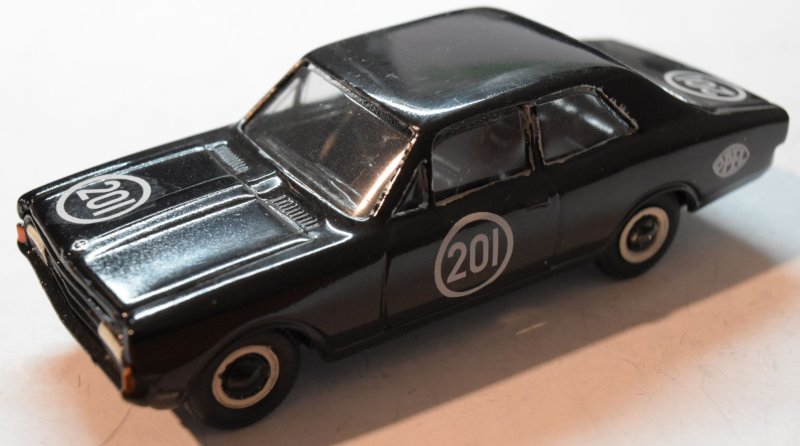 Modell / Kurzbeschreibung: Opel Rekord C 1968 - Schwarze Witwe - 1:43 Autodrome ADS 04 - Weißmetall-Kit gebaut - Zolder 1968 #201 - Steinmetz - no box - Hinweise: ev. Umbau aus Rekord C