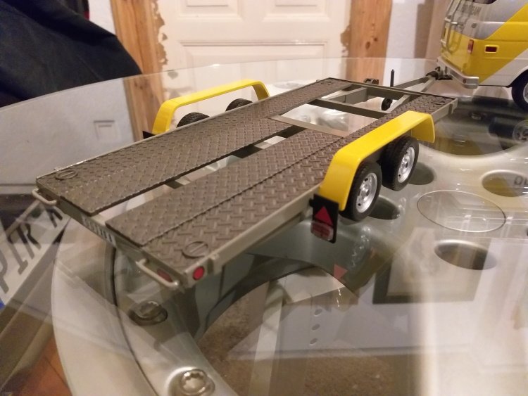 Der Anhänger besteht hier bei nicht aus Resin sondern aus Zinkdruckguss, die Rampen sind annehmbar, einzig seine Räder sind drehbar und wirken etwas verlorene in den großen Radkästen.