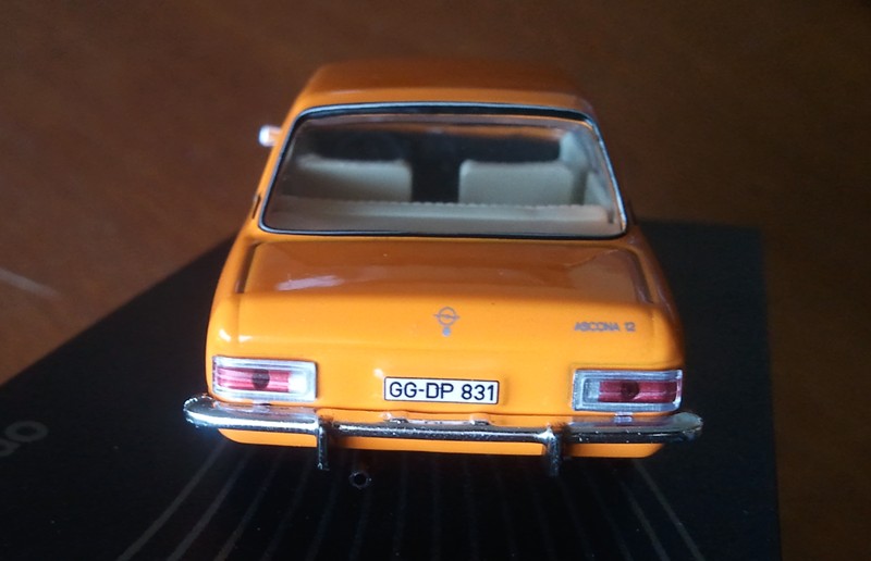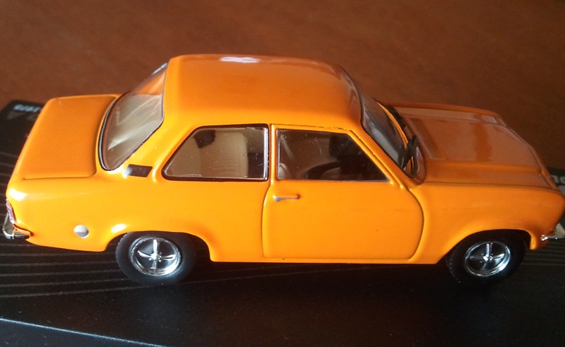 Der Maßstab ist gehalten worden. Die Farbe orange ist auch OK, bringt Farbe in die Vitrine. Da es sich hierbei "nur" um das normale Modell handelt, also ohne Extras wurde somit auch auf Chrom um Radläufe und Fenstereinfassungen verzichtet. Der Innenraum ist auch gut, lediglich Kopfstützen fehlen, die gab es aber beim Standardmodell auch nur gegen Aufpreis. Die Türgriffe könnten schöner sein. Wenn man das Modell direkt von vorn betrachtet, fällt mir sofort die klobige Verarbeitung der Vorderachse auf, sieht aus wie ein Kasten unter dem Fahrzeug und wirkt unschön. Ansonsten eine recht gute Verarbeitung von einigen Details mal abgesehen, Anbei wieder einige Fotos.
