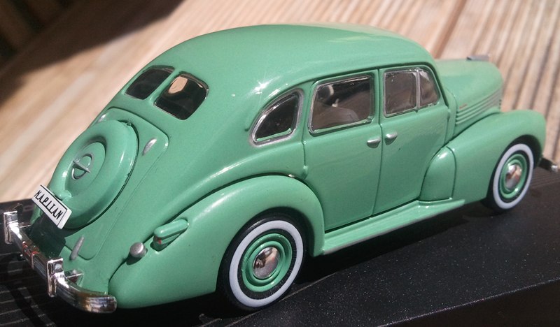 Claus hat im Prinzip schon alles richtig zusammengefasst, ich meine der Mann hat Ahnung. Das was mich am meisten aber stört sind wirklich die überdimensionierten Spaltmaße (vordere Kotflügel zur Motorhaube - hintere Kotflügel zu C-Säulenbereich - Trittbretter zu den 4 gegenläufigen Türen). Über die Farbe kann ich gar nicht schimpfen, schließlich gab es dieses Grün ja wirklich 1939, wäre ja langweilig wenn alle Modelle vor 1945 in schwarz jetzt rauskämen weil die meissten Fahrzeuge in dieser Zeit in schwarz ausgeliefert wurden! Den Scheibenwischer auf der Fahrerseite bekommt man aber leicht in die richtige Stellung sodas der Eindruck von gegenläufigen Wischer entsteht - bleibt dann aber trotzdem ein rechter Wischer. :roll: