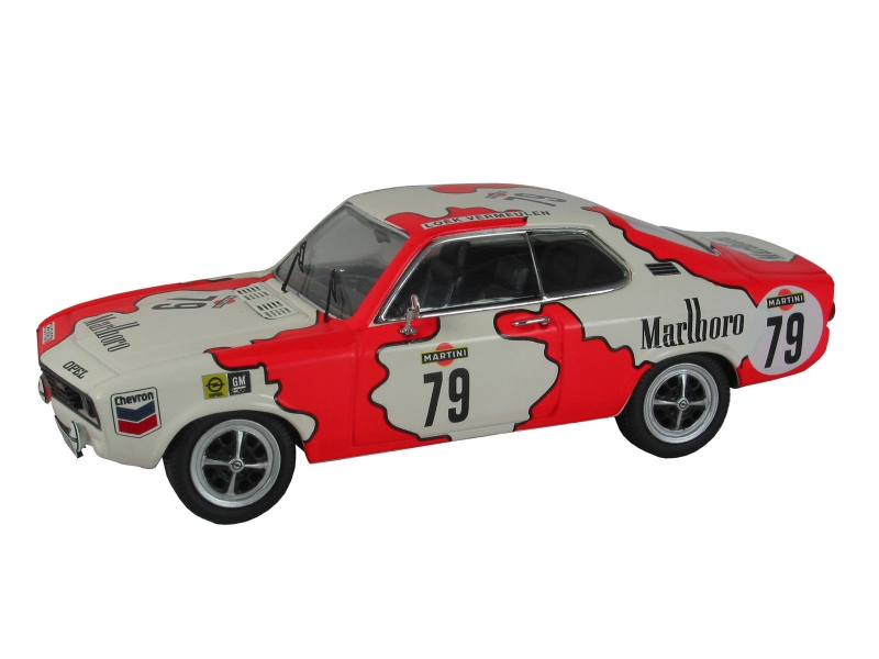 Allerdings habe ich mal nach Vorbildfotos gesucht, und nur eines gefunden - dort sieht das Auto aber eindeutig anders aus. Z.B. ist die Startnummer auf der Motorhaube gerade und mittig aufgebracht und nicht, wie im Modell 45° gedreht und auf der rechten Seite der Haube. Und auch das Muster auf der Haube scheint anders zu sein. Kennt jemand vielleicht noch ein besseres Foto vom Original? Ich habe nur das eine mit dem Commodore und dem Manta nebeneinander über die Bildersuche gefunden.