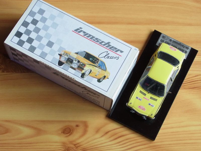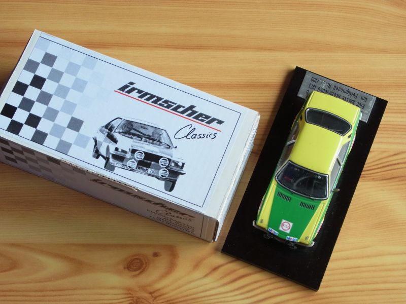2) Commodore B Coupe RIOC Rallye Regensburg 1973 mit Röhrl/Berger, Startnummer 1, Seriennummer: 20 von 100, alle 4 Reifen gerissen/geschrumpft, mit Zertifikat (leider hat Irmscher da nur auf normalen Papier ausgefertigt)