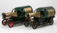 Das Modell mit den roten Felgen und ohne Frontscheibe ist ein kürzlich gebauter Bausatz; der Bausatz mit den dunkleren Felgen stammt von Homburgmodell und wurde vor mehreren Jahren gebaut.