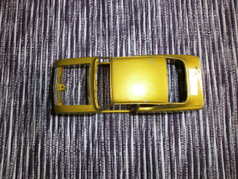 alter Kadett B Coupé - Kiemencoupé - in gold metallic, Lack gut, Zierstreifen unvollständig, hintere Stoßstange fehlt, vordere Einheit aus Kühlergrill/Stoßstange vorhanden, jedoch sind die Ecken abgebrochen und das Chrom "verwischt", leichte Verbiegung an der A-Säule/Dachholm links, geringer "Zinkfrass" an rechter Endspitze. Ebenso fehlen Verglasung - Türen - Motorhaube, .......