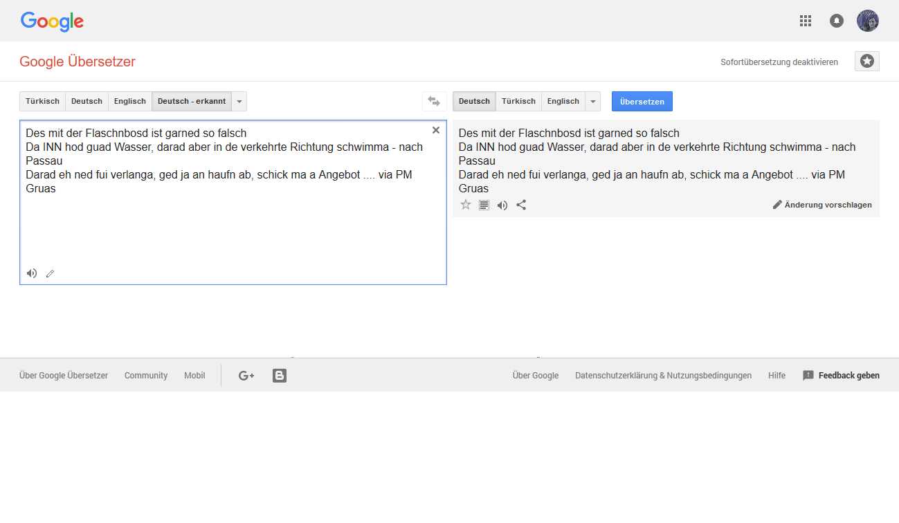 - selbst Google-Translate gibt bei Eurem Hinterwäldler-Dialekt auf