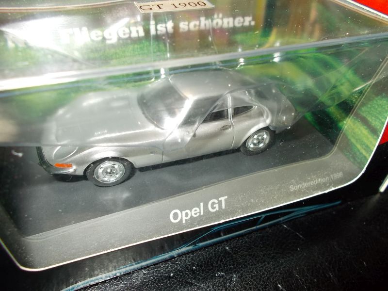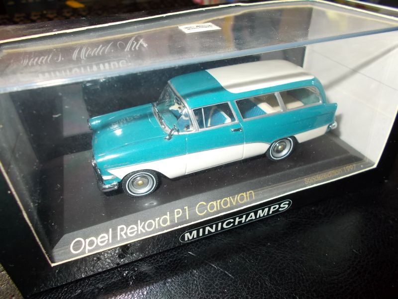 Z.B. Minichamps Kapitän´51 schwarz, Minichamps Rekord P1 Caravan blau/weiss/weiss, Schuco GT in blau oder silber, Vitesse Patent-Motorwagen in rot, Schuco Astra G in dunkelgrün...