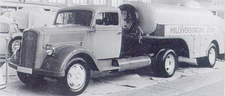 Bleiben wir noch einen Moment bei Sattelzügen. Hier ein Tankwagen der Milchversorgung Essen aus der Zeit von 1937-1938, kenntlich an den nur 6 Radschrauben. Das Fahrzeug soll irgendwo im Baltikum in einem Museum stehen.