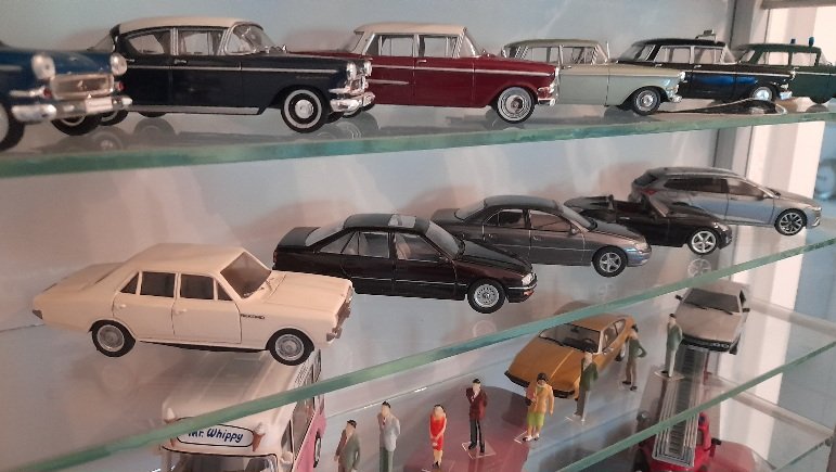 Ich habe aber immerhin von jedem Opel, den ich einmal selbst bewegt habe (oder noch bewege), und auch von den Familien-Opels aus meiner Kindheit zumindest ein ziemlich ähnliches Exemplar (bis auf Farbe, Felgen oder ein paar Kleinigkeiten) in einer der Vitrinen stehen - das muss vorerst reichen.