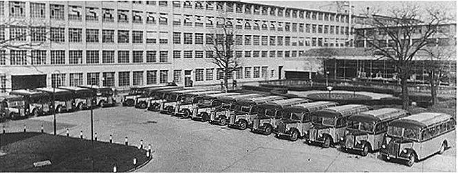 Neben dem 1,5-Tonner baute Opel in ganz geringen Stückzahlen und praktisch in Einzelanfertigung auch noch eine Nachfertigung des 3-Tonners. Die meisten dieser Fahrzeuge wiesen den langen Radstand von 4.700 mm auf und wurden dem entsprechend hauptsächlich als Busse karossiert - eine immer noch ganz dringend benötigte Fahrzeugart! Hier ein Blick auf einen Teil der opeleigenen Werksbusse.