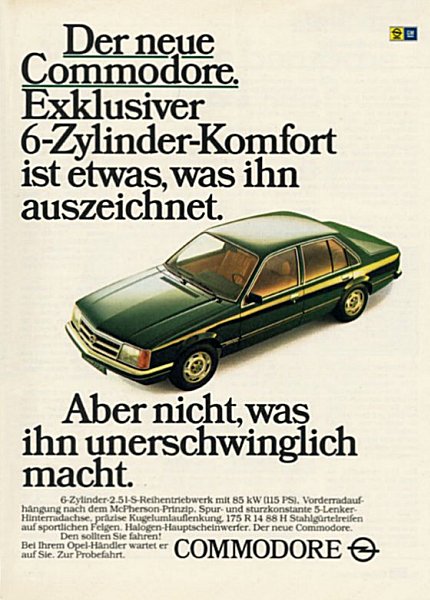 ² Aber, Achtung! Wer sich, gerade beim Commodore C, zügig durch das Angebot an zusätzlich oder alternativ Lieferbarem arbeitete, landete trotz der günstigen Grundpreise schnell deutlich über 20.000 Mark und damit in der Nähe der Preise von Senator & Monza!