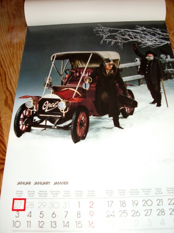 Der Zustand ist abgesehen von kleinen Eselsohren am unteren Rand wirklich gut, sogar das Papier in dem vorgestanzten Loch zum Aufhängen des Kalenders ist noch da.