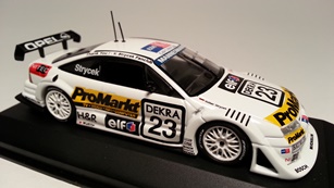 Ich habe den ITC Calibra V. Strycek, #23, Maßstab 1:43, vom ITC-Lauf auf dem Nürburgring 1996 erstanden. Entgegen der bekannten 2 Versionen dieses Modells von Minichamps (430964323) mit schwarzen Felgen hat das Modell weiße Felgen! Handelt es sich um einen Umbau auf Minichamps-Basis oder gar eine 3. Version original von Minichamps? Fuhr der Wagen überhaupt mit weißen Felgen, ggf. Training?