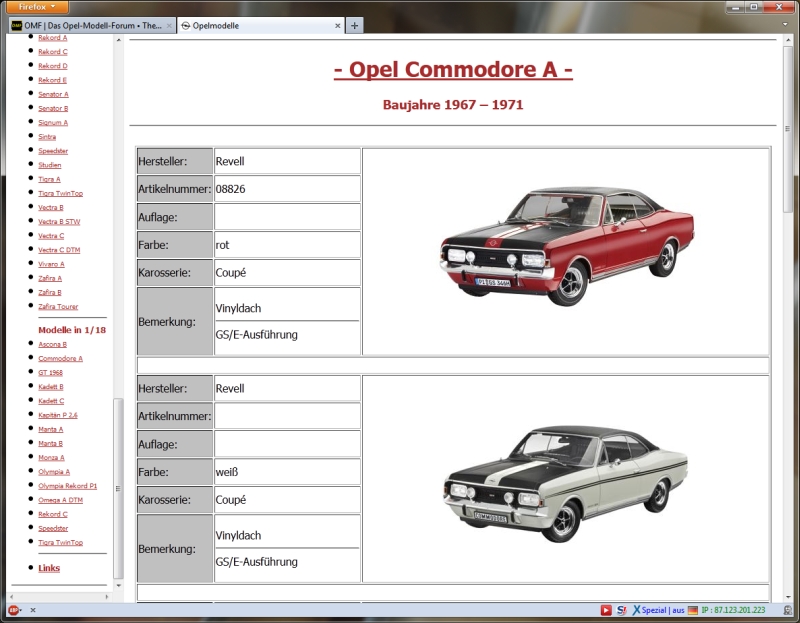 Neu sind die Tabellen für die Modelle in 1/18. Diese weisen aber noch einige Lücken in Sachen Artikelnummern und Bilder auf. Ergänzungen und Korrekturen sind daher herzlich willkommen. :P