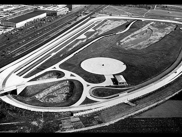 Im Laufe des Jahres 1950 konnten die Wiederaufbauarbeiten im und am Rüsselsheimer Werk abgeschlossen werden, so dass nun wieder unter friedensmäßigen Bedingungen produziert werden kann. Dennoch wird fleißig weiter gebaut. Direkt an das Werk anschließend, gegenüber den beachtlich ausgedehnten Gleisanlagen des Opel-Bahnhofs, entsteht 1951 ein neues, nach den modernsten Erkenntnissen großzügig gestaltetes Prüffeld.