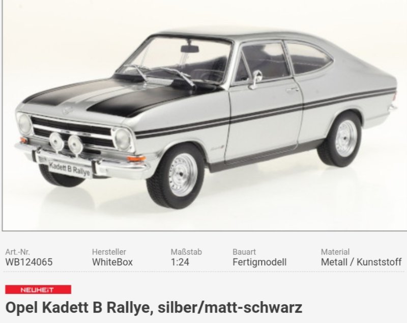 Opel Kadett B Coupè Rallye, silber/schwarz matt, 1:24