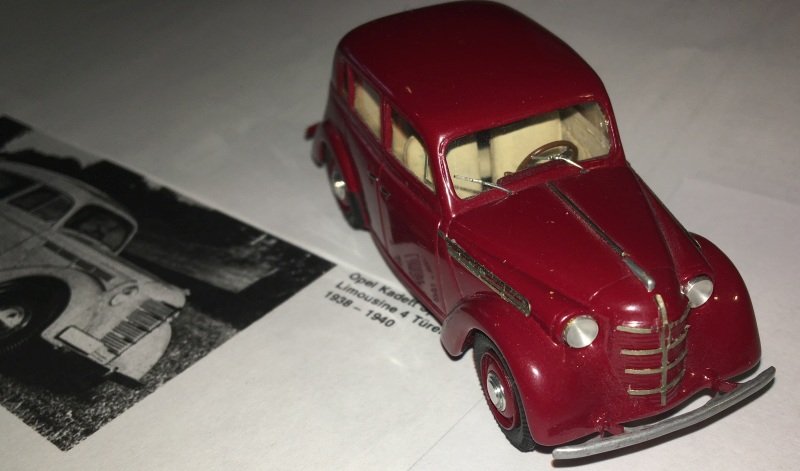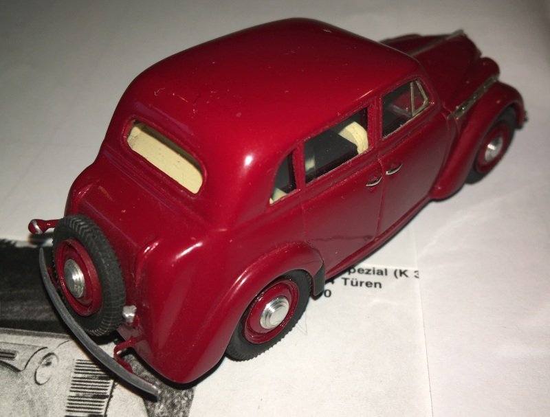 Modell / Kurzbeschreibung: Opel Kadett (K38) - Limousine 4-tür - BJ 1938-40 - 1:43 - EMC by J.Kiper - Resin weinrot - Fertigmodell