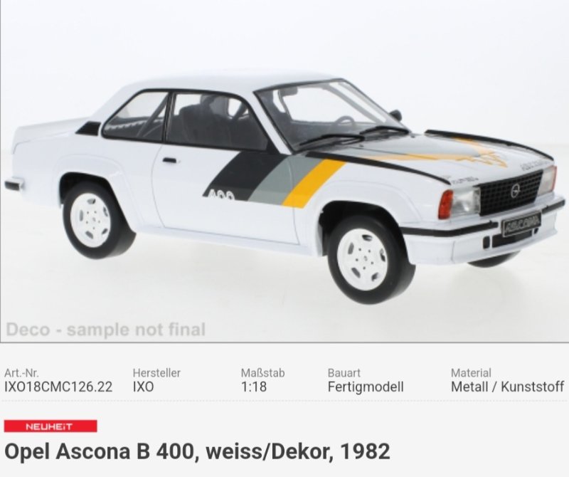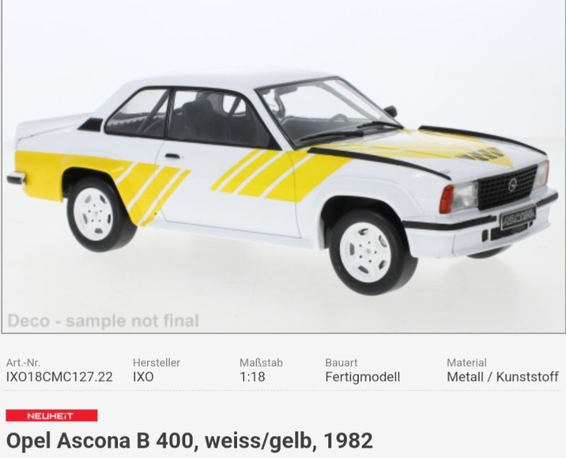 Hier die Modell-fertig Bilder der 2 neuen Ascona's......Auslieferung in kürze!