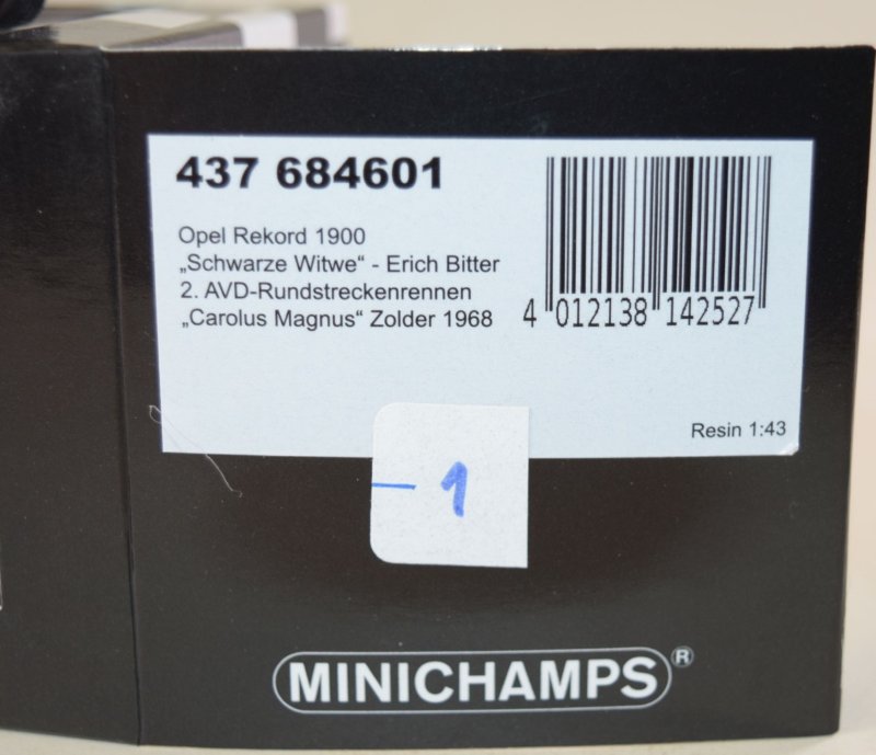 Opel Rekord C 1968 - Schwarze Witwe - 1:43 Minichamps 437684601 - FM Rundstreckenrennen 2. AVD - Zolder #201 Bitter 300