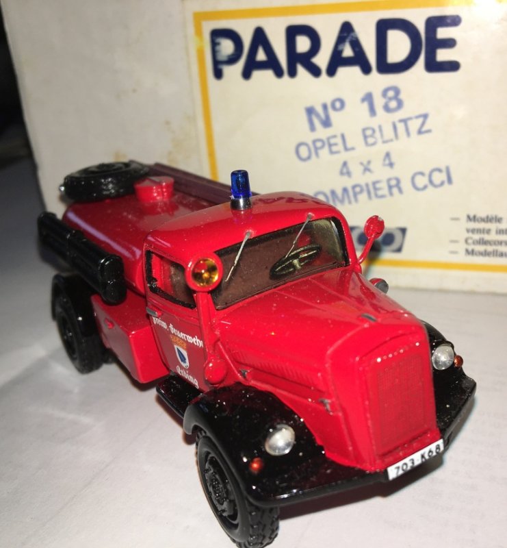 Modell / Kurzbeschreibung: Opel Blitz 4x4 Feuerwehr Wagen - BJ ca. 1939–1945 - 1:50 - Parade No.18 - rot - Fertigmodell