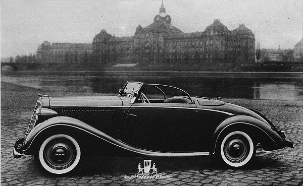 Nach Kriegsbeginn am 1. September 1939 kam der Bau ziviler Pkw in Deutschland recht bald zum Stehen. Ab 1940 spielten Eleganz und Prestige kaum noch eine Rolle - Zweckmäßigkeit und Materialersparnis traten in den Vordergrund! Privates Autofahren war ohnehin nur noch mit Ausnahmegenehmigungen gestattet, zu deren Erlangung es schon „kriegswichtiger“ Gründe bedurfte, sofern man nicht zum Kreis jener Personengruppen zählte, die sich der wohlwollenden Gunst des Regimes erfreuten.